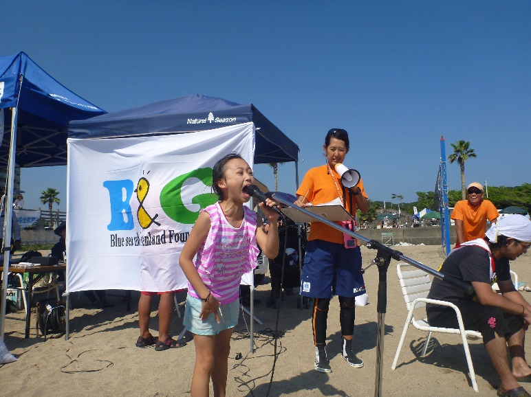 「海」に向かって思いを叫び、声の大きさを測定し、優勝・特別賞を含め4名を表彰しました。