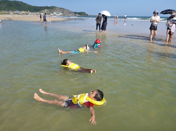 御宿町の小学生から「水辺の安全」に関する標語を募集し、A3判の水辺のかるたを制作。当日、制作したかるたを海に浮かべ、読み上げ、かるた遊びを通して、水辺の安全に関する知識を遊びながら学びました。