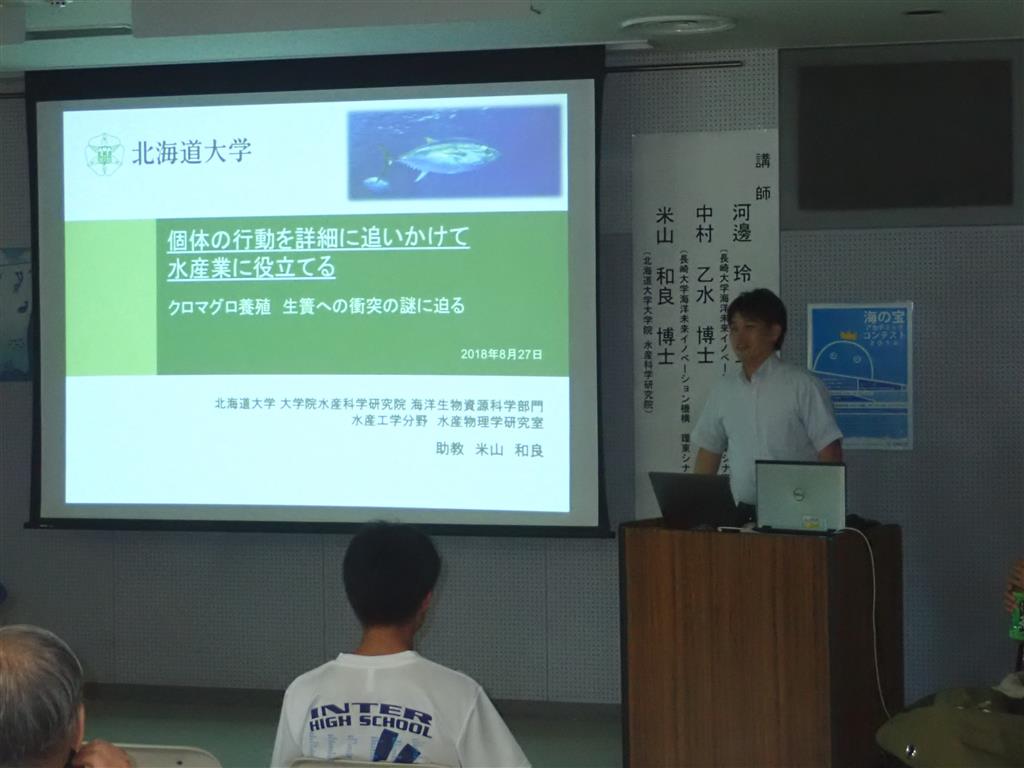 市民、高校生大学生等を対象とした、「バイオロギングで知る魚の行動」を鹿児島市本港新町のかごしま水族館において実施しました。