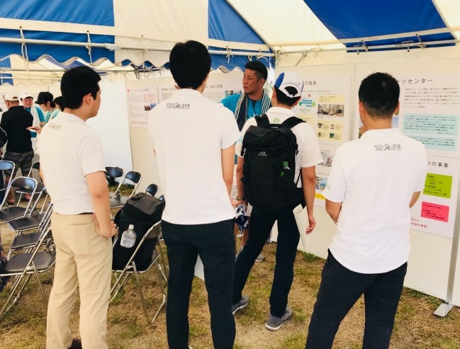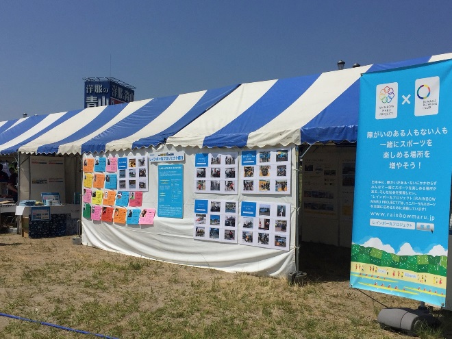 琵琶湖に障がいの有無にかかわらず一緒にスポーツが楽しめる拠点(なぎさのスポーツセンター)を建設することを目指しています。イベントの参加者に対し、レインボー丸プロジェクトについての認知、拠点への理解と共感を得ることを目的に、ブースを解説しました。