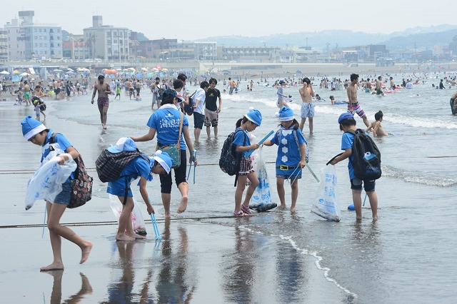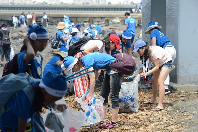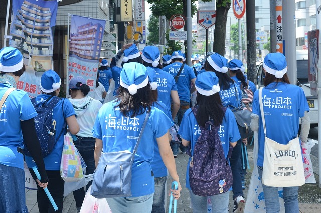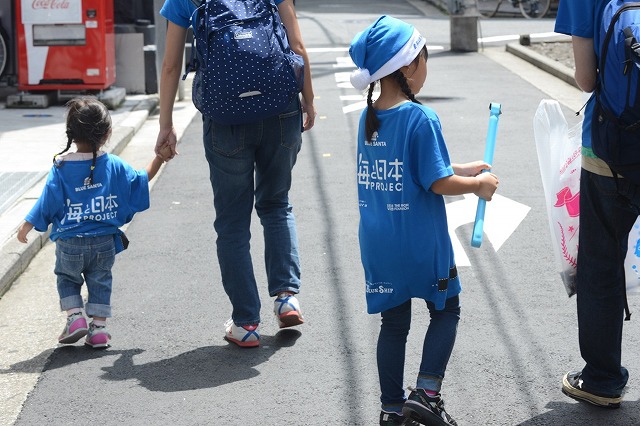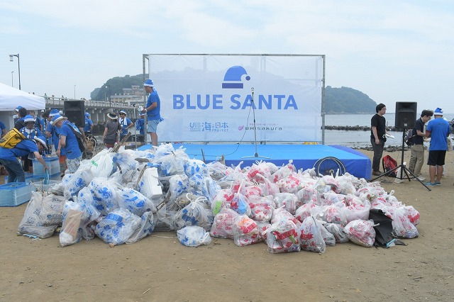BLUE SANTAは、日本財団が推進する「海と日本プロジェクト」のサポートプログラムです。次世代の子供たちや海の生き物たちのために、白い袋にゴミを入れて海をキレイにする「青いサンタクロース」を海の日に実施。海のゴミは川・街を通じてやってくることなど、海洋ゴミの深刻さを伝えました。
