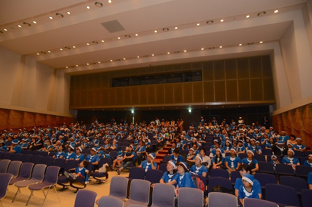 ホールの中で、ゴミ拾いが始まる前に、参加者約500名の皆様に、趣旨や、街と海のつながりをお話しさせていただけました。