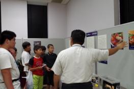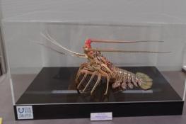 午後は、会場の千葉県立中央博物館の海の博物館で展示されている企画展「夏休み海の学びスペシャル エビざんまい」を奥野先生の解説付きで見学しました。イセエビ科のなかでは最大のニシキエビや房総半島には生息していないイセエビ科のゴシキエビの標本、房総半島でとれるイセエビ(一般には伊勢海老と表記されることが多い)、千葉県の銚子で水揚げされているボタンエビなど、食材として身近にあるエビの剥製や写真などを観察しました。