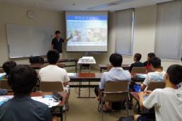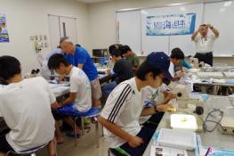 最後は、実習室でのヤドカリ実験へ。講師は北海道大学の和田哲教授が務めました。まずは奥野先生からヤドカリを貝殻から追い出す方法の説明がありました。