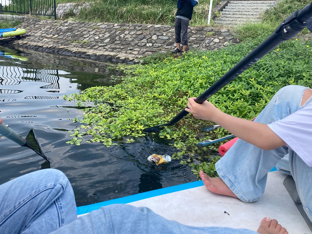 快晴のなか、SUPごみ拾いからスタート