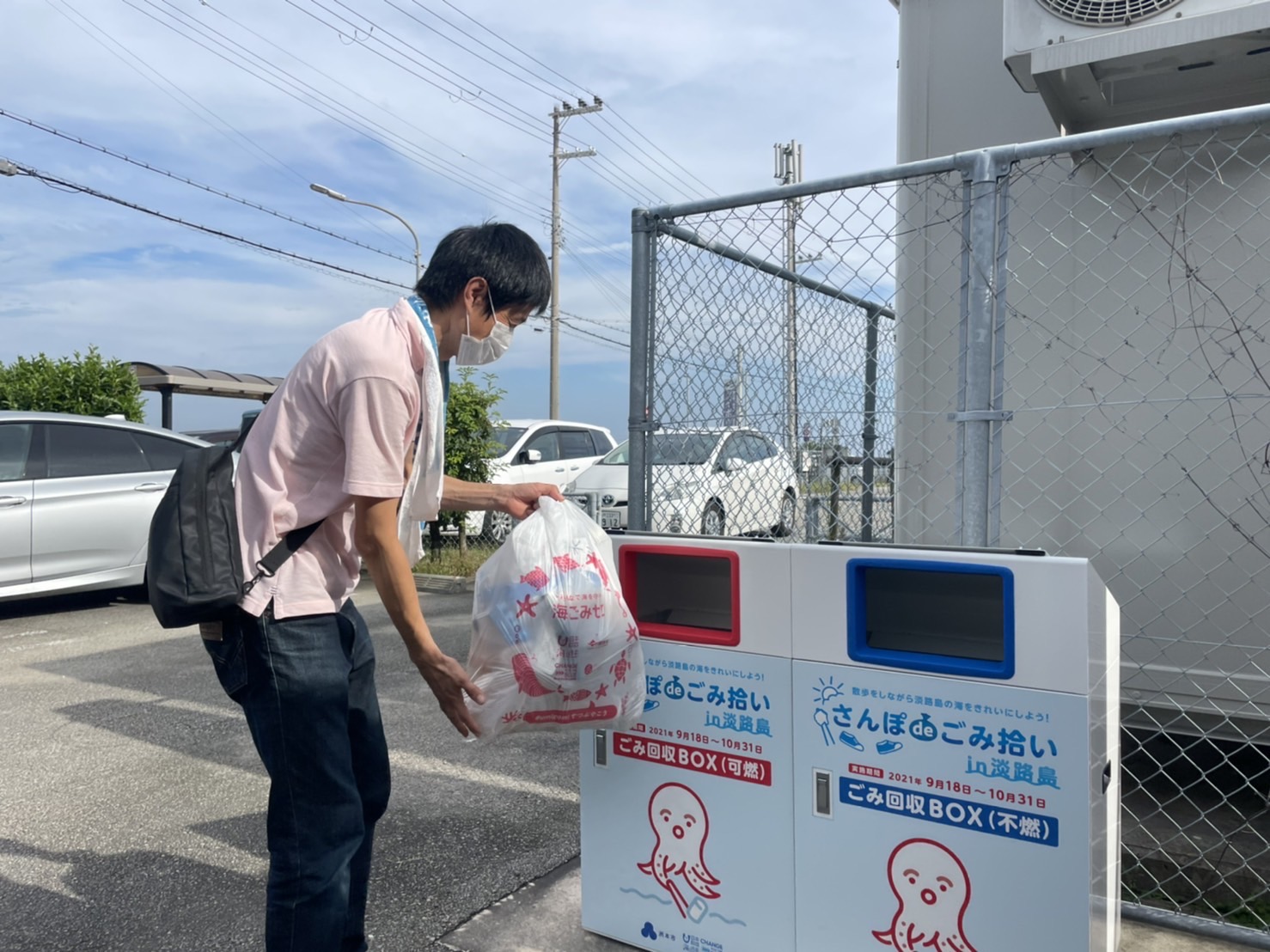新型コロナウイルス感染拡大の影響で、団体でのごみ拾いは開催しにくくなりました。そこで、密を作らず個人でも気軽にごみ拾いができる事を目指し、洲本市内にある協力店15店舗に特設ごみ箱を設置。