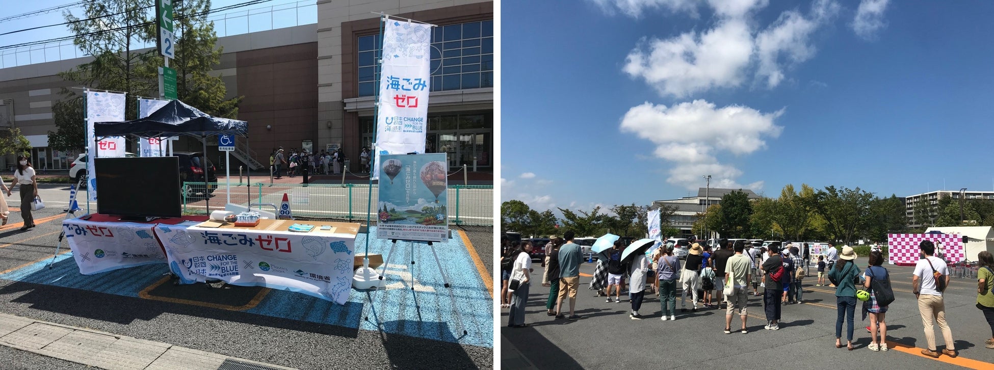 イオンモール佐久平駐車場の一角にイベント会場を設け、ながの海ごみゼロプロジェクトのPRブースならびにモールの各店舗がブースを出展。環境美化に対する取組みや、”海から一番遠い地点が存在する佐久市”から、海洋ごみを減らすために出来るアクションについて、来場者へ発信しました。