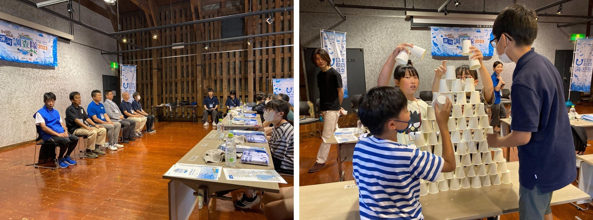 今回のプレイベントには北海道内から参加の調査隊員19名が参加し、この日が初めての顔合わせとなりました。緊張の面持ちで参加したメンバーたち。まずはリラックスして仲を深めるため、グループごとに紙コップ積み上げゲームに挑戦しました。協力してコップを積み上げることに成功し、子どもたち同士打ち解けた様子でした。