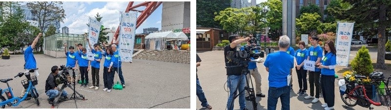 海洋ごみ問題の早急な対策を図るため、日本財団と環境省は共同で、「海ごみゼロ」を合言葉に一斉清掃活動を推進。5月27日(土)~6月11日(日)を強化月間として設定し、初日の5月27日(土)に大阪でキックオフイベントを開催しました。北海道エリアの取組みとして、HBCアナウンサーとポロクルスタッフが中継で登場し、翌日に行われる本イベントを紹介。さまざまな催し物で盛り上がる大通公園(さっぽろテレビ塔)を舞台に、意気込みを全国へ向けてアピールしました。