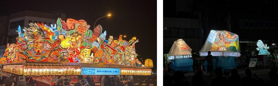 (左:青森山田学園ねぶた実行委員会・前ねぶた正面)