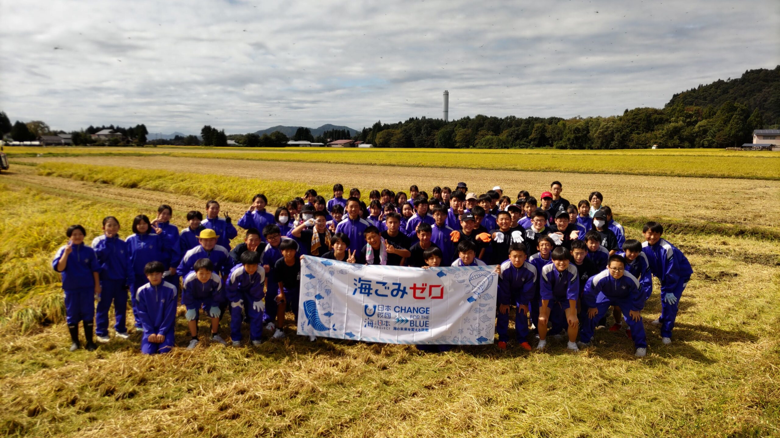 地元の中学生が農業の現場から海洋ごみゼロ宣言!脱プラスチック肥料を使用した米作りで海ごみゼロ宣言!稲刈り篇を開催しました。
