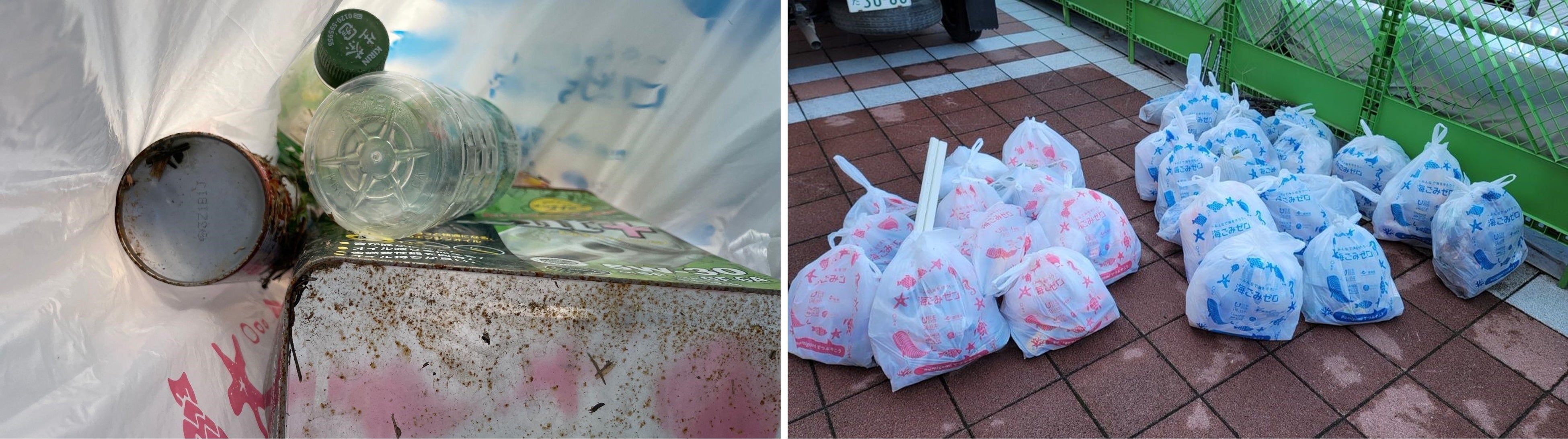 各エリア約1時間の清掃活動で30ℓの袋で”燃えるごみ”175袋、”燃えないごみ”103袋のごみが回収されました。