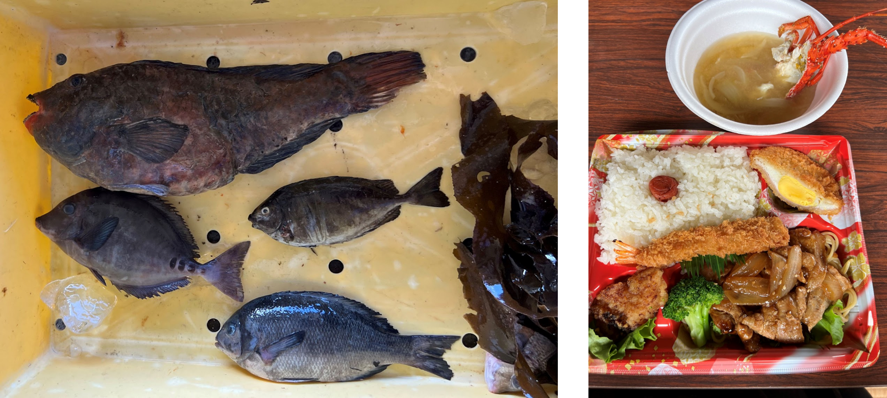 授業後のお昼ご飯では、地元の飲食店の協力で「ブダイ」の唐揚げが入ったお弁当を用意していただきました。くさみがなくあっさりと美味しく食べられることに子供たちが驚いていました。