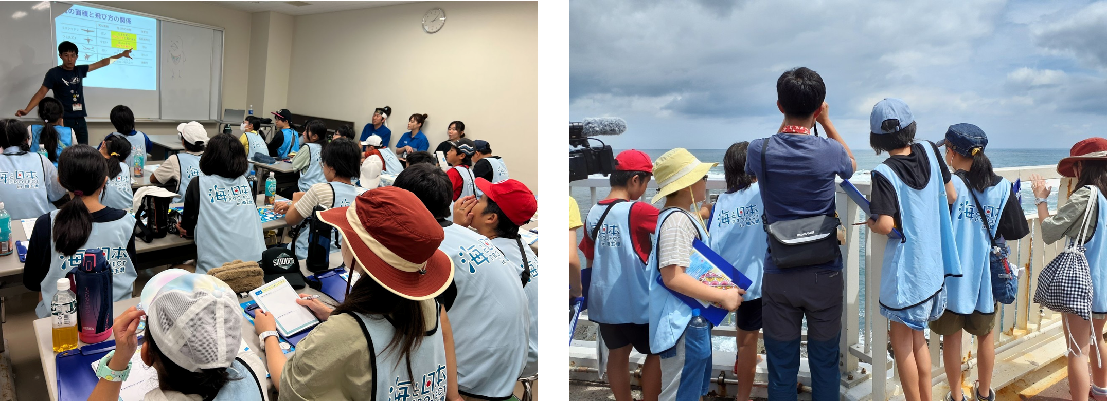 その日の午後には、千葉県立中央博物館分館海の博物館の平田和彦さんを講師に迎え、勝浦周辺に生息する海鳥について学びました。海風を利用して遠くまで飛行するオオミズナギドリなどの海鳥の生態や、海鳥によって作られる生態系についての授業に、子供たちは熱心にメモを取っていました。