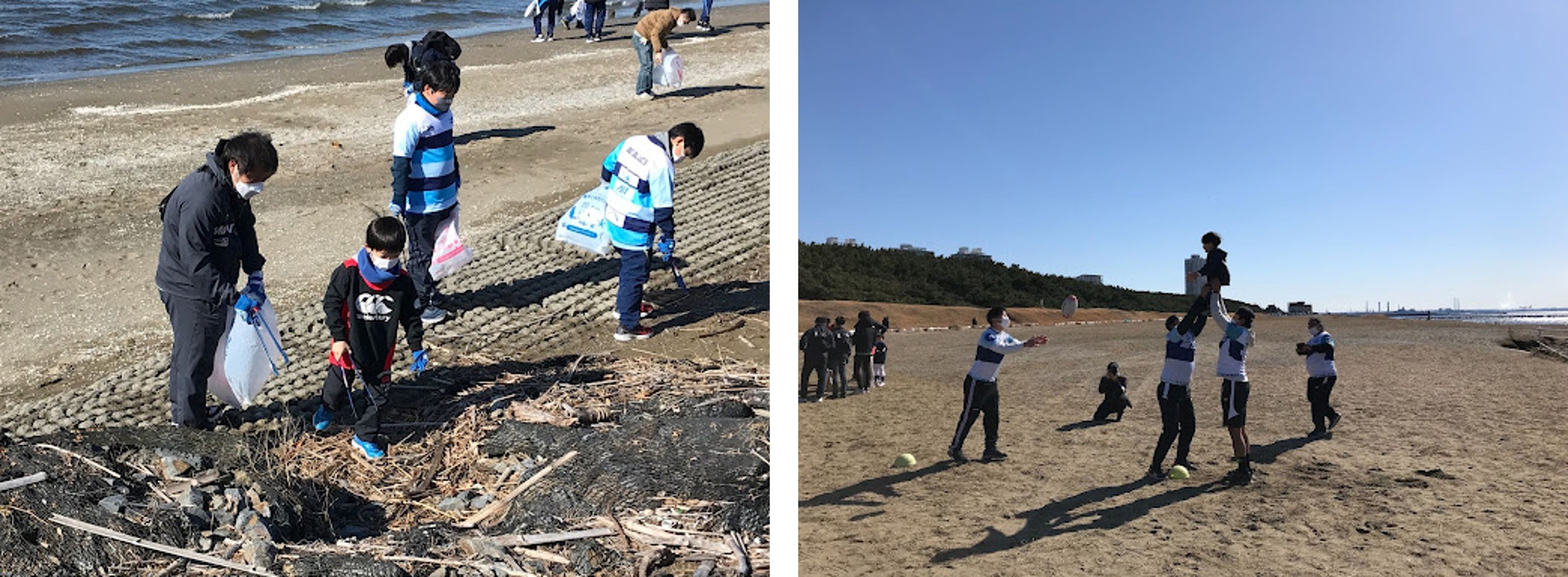 ・晴天のもとごみ拾いにラグビー体験に、とても充実した土曜の午前を過ごせました。