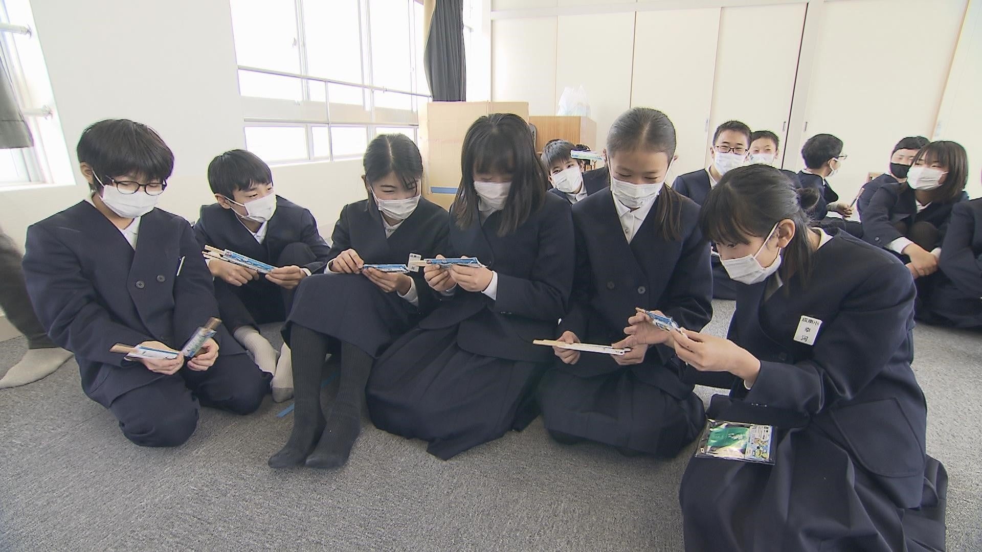 海を守るために山と海の小学校が協力!山と海をつなぐオリジナル間伐材箸贈呈式を開催
