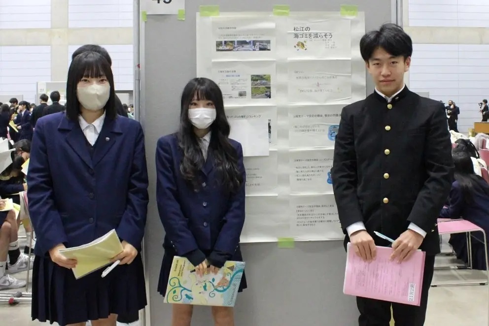 「松江の海ゴミを減らそう」チームは、「海洋ごみ問題は島根県や松江市だけではなく世界が取り組んでいかないといけない問題である。活動場所や拾ったごみの処理方法など、考えることが多くあり、自分たちだけで活動を行うのは難しい面があったが、行政や自治会などの協力で実施することができた。分別してみて、国内の家庭ごみが多いことに気付いた。ごみを出さないこと、捨てないことが大事で、普段の小さな心掛け「レジ袋を使わない、ごみの分別、ポイ捨てしない」など、日々の心がけが大切だと思う。」と発表しています。