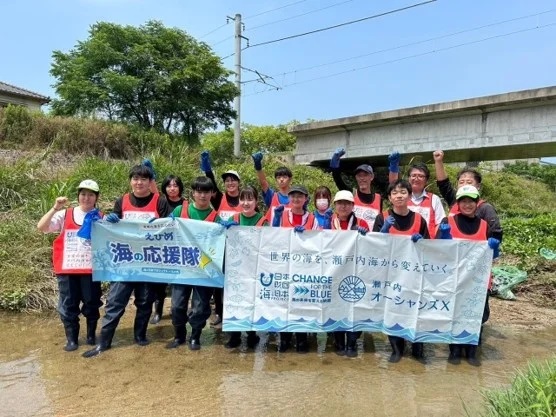 都市河川から瀬戸内海へのごみの流出を食い止めることを目的とし、愛媛県立松山西中等教育学校内の環境活動グループである「新世界学辞典」のメンバーと連携した大川における清掃実施計画立案と清掃活動の実施