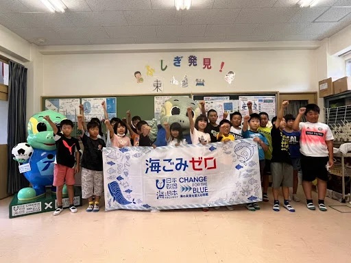 CHANGE FOR THE BLUE in大分実行委員会は、株式会社大分フットボールクラブ・大分県うつくし作戦推進課とタイアップし、7月5日(火)に海洋ごみに関する「NEETAN FOR THE BLUE」出前授業を実施しました。