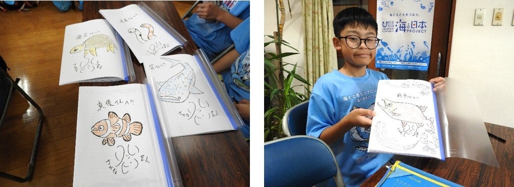 最後に、さかな芸人ハットリさんが児童たちに絵のプレゼントをしました。児童たちは自分の好きな魚をリクエストし、ハットリさんは一人一人に心を込めて描いていました。ある児童がベニザケをリクエストした理由を尋ねると、「サーモンを食べて美味しくて魚が好きになった。魚の本を買って鮭のことを調べているうちに、ベニザケを見てかっこいいと思った。大好きな魚です」と嬉しそうに話してくれました。