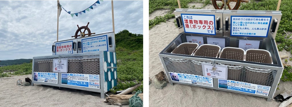 今回設置した「拾い箱」は、「ボイジャーズポート」と呼ばれ、発起人であるOcean Diary代表の鮫島さんや地域おこし協力隊の原島さんをはじめ、地域住民の方々のアイデアが詰まったいちき串木野市オリジナルの「拾い箱」になっています。Voyager(ボイジャー)は航海者、Port(ポート)は港、長期期間大海原を漂い、旅をする海のごみを航海者と例え、航海者がたどり着く最終地「Port」に漂着ごみがたどり着くことを目的とする回収BOXとして「ボイジャーズポート」名付けられました。