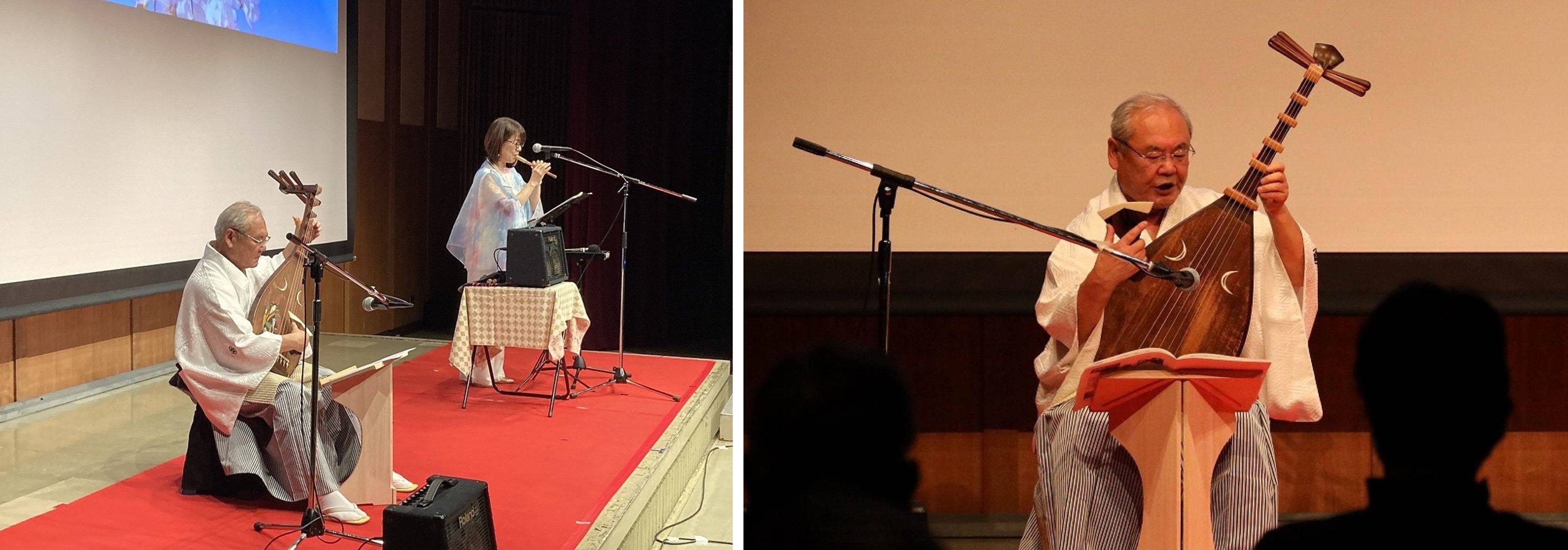 民話アニメの上映に合わせ、沼田監督のトークショー、舞台となった関蝉丸神社の宮司のトークショー、アニメに登場する楽器・琵琶の演奏、びわ湖から生まれた楽器・よし笛の演奏などが披露されました。