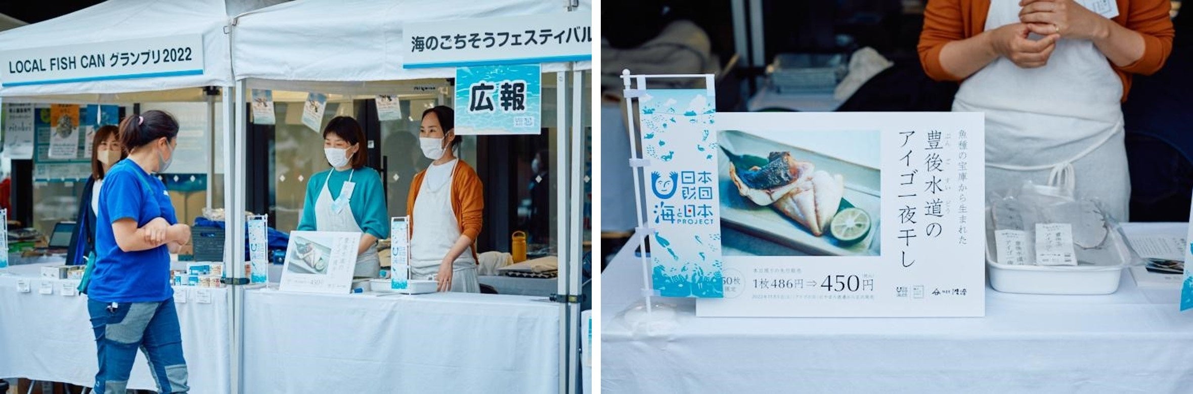「#アイゴプロジェクト」第二段の取り組みとして、海のレシピプロジェクトと「やまろ渡邉」が商品開発した「豊後水道のアイゴの一夜干し」を11月5日(アイゴの日)に発売します。発売を記念して、イベント当日は、海のごちそうフェスティバルの会場内にて、50枚限定、1枚450円(税込)の特別価格で先行販売しました。「アイゴを食べてみたい」「アイゴってそもそも何?」「どんな味?」「大きくて厚みがあって美味しそう」「干物が好き」「地元ではアイゴの干物を食べていた」など、会場を訪れた様々な方が色々な想いで買ってくださり完売。また会場内では、商品販売のPRだけでなくアイゴの存在を知っていただく機会につなげたいと、アイゴの干物を用いたレシピ情報も掲載したチラシを作成し配布しました。今回の販売時のお客様の反応より、改めて「未利用魚」の存在や「磯焼け」の問題を伝えていくことの大切さを感じ、おいしく食べることで海を未来につなぐ取り組みに繋げていきたいと感じました。