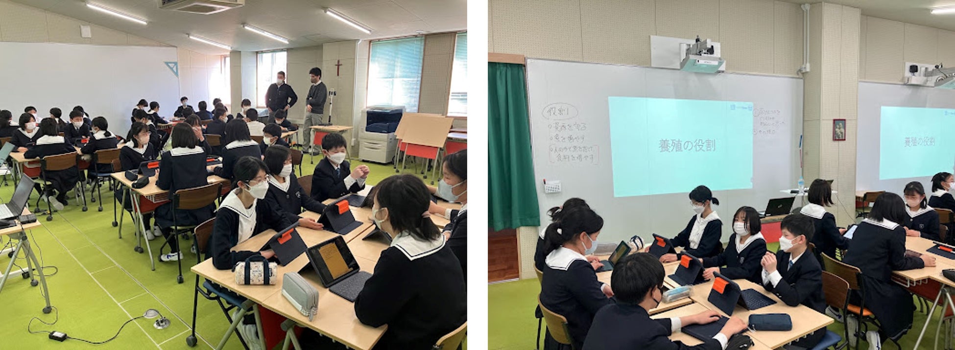 “陸養”プロジェクト実行委員会は、福島県の郡山ザベリオ学園小学校で昨年9月から5年生がヒラメの養殖にチャレンジしてきました。成育期間の終了に際し、これまでの活動を振り返りながらヒラメの最後について話し合う「議論」と、その結論を実行する「実行」の授業を2023年2月27日(月)、3月6日(月)に、同校にて開催いたしました。