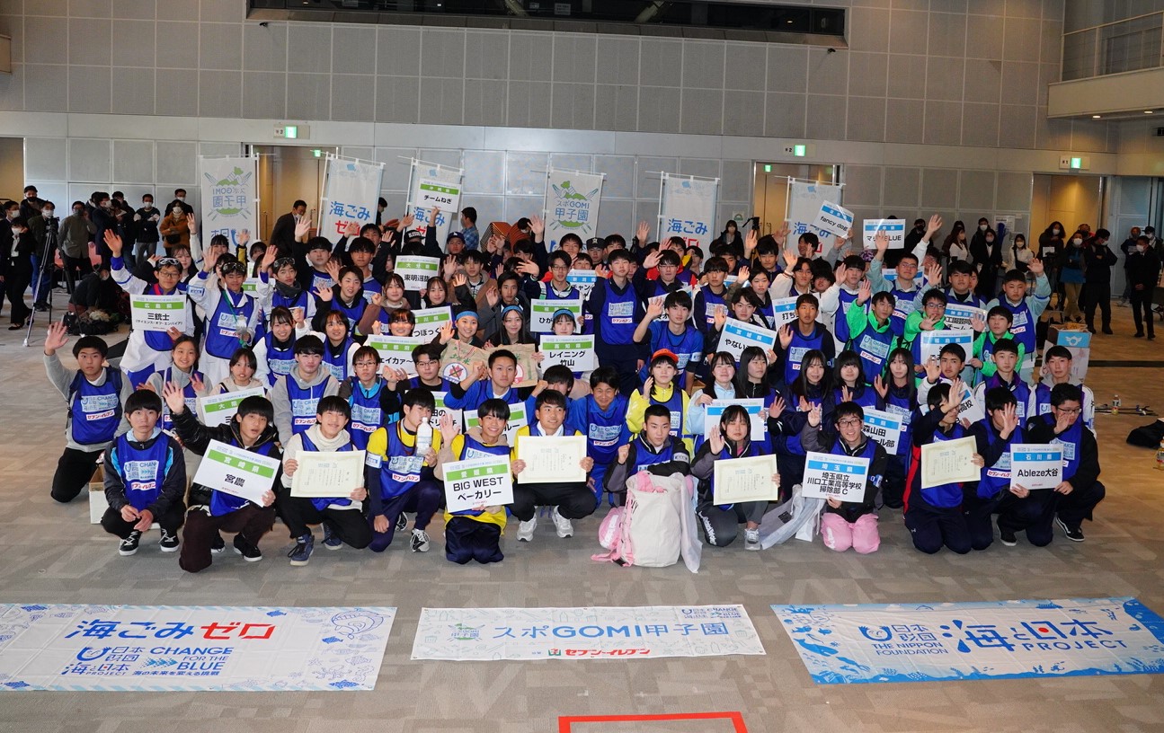 優勝は、埼玉県代表「埼玉県立川口工業高等学校 掃除部C」、準優勝は、愛媛県代表「BIG WEST ベーカリー」、第3位は、石川県代表「Ablaze大谷」、そしてオリジナルアイテム賞は宮崎県代表「宮農」が受賞、35チーム104名が参加し、2021年の約1.4倍の総重量265.67kgのごみを集めました。