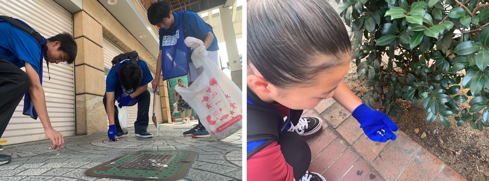 高校生たちは小さな溝に入った吸い殻まで、丁寧に取り除いていきました。中にはじっとしゃがんで小さなプラスチックの破片を拾う高校生も。話を聞くと「みんなはポイントを狙って大きいごみばかり拾っているから。私はこういう小さいごみを拾って街をきれいにするんです。」と…。なんて美しい心なんだと感激してしまいました。街中など陸にあるごみは巡り巡って海へと流れ着きます。