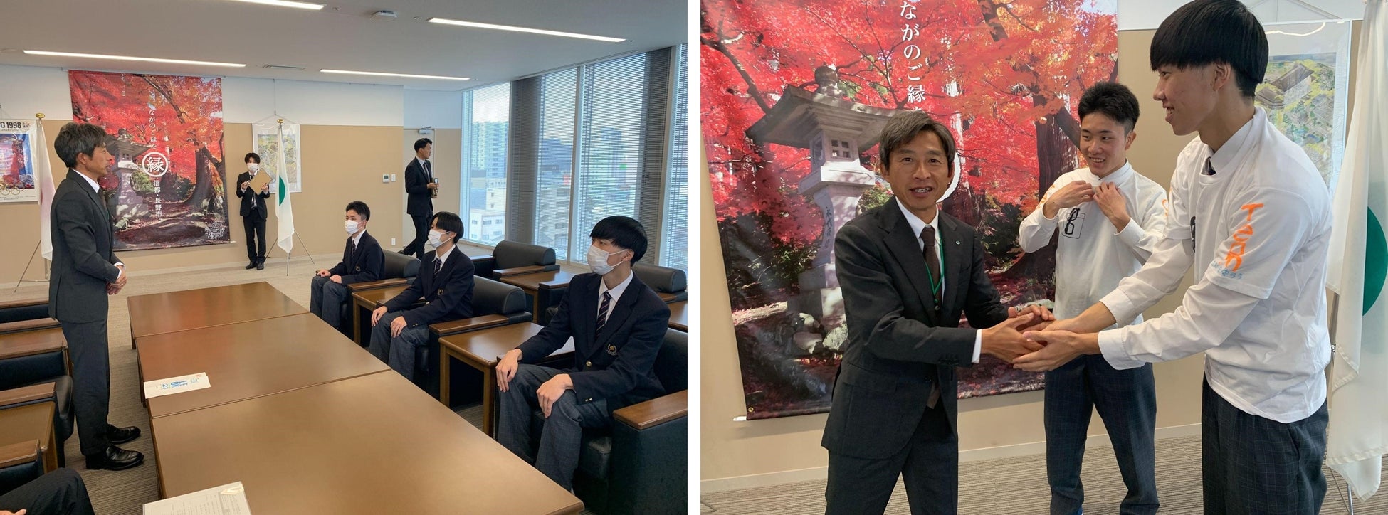 『スポGOMI甲子園2023・長野県大会』で優勝した松代高等学校在校生3人組の「one team」が、大会での成果を報告するため長野市の荻原健司市長を表敬訪問いたしました。
