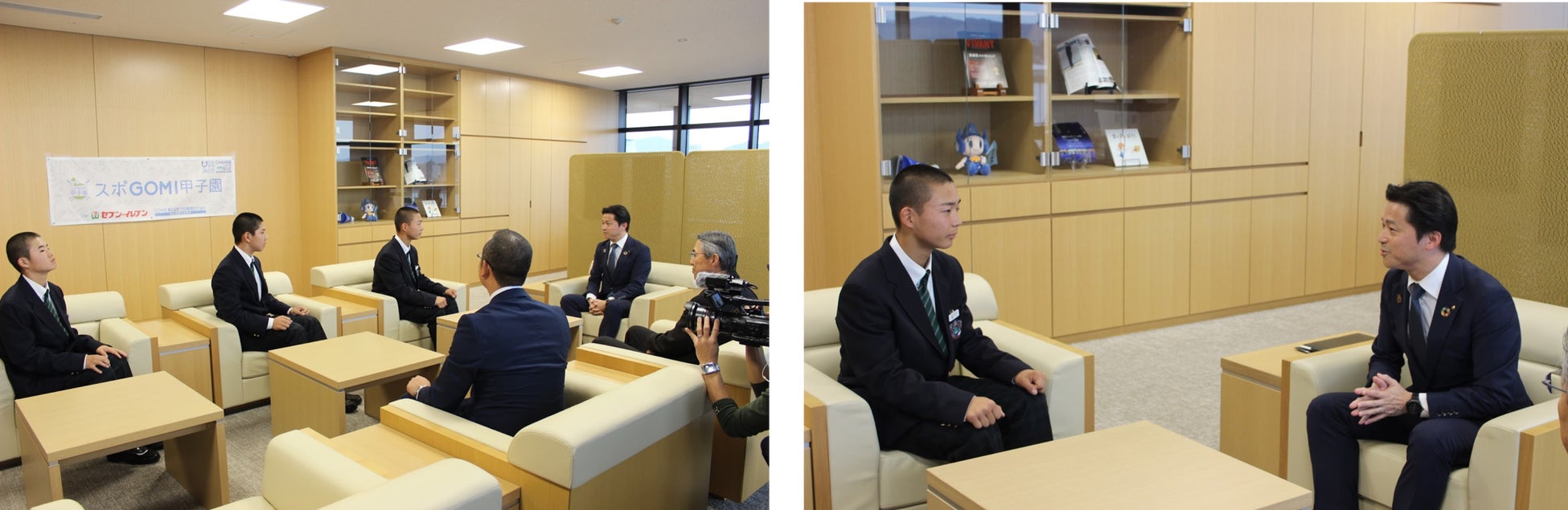 2023年6月17日に行われた『スポGOMI甲子園2023・島根県大会』で優勝した開星高等学校(島根県松江市、校長:小山内 仁)在校生3人組の「チャンピオンズ」が、大会での成果を報告するため島根県松江市上定市長を表敬訪問しました。