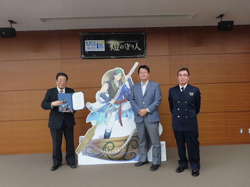 全国灯台文化価値創造フォーラムは、燈の守り人キャラクターを活用して、地域の灯台を歴史・文化資産として活用する機運をつくるため、キャラクター化の対象となる「鵜ノ尾埼灯台」が立地している福島県相馬市の立谷秀清市長を表敬訪問し、キャラクターの贈呈式を実施しました。