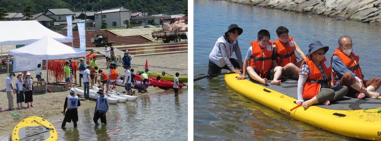 イベントの主要プログラムとして、「カヤック」「ビッグサップ」「双胴バナナボート」「水上自転車」等のマリンアクティビティの体験を行いました。参加した視覚障がい者の方は、スタッフの呼びかけやサポートにより、少しずつリラックスし、アクティビティを楽しむ様子が伺えました。