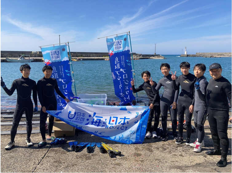 青谷高校の生徒が透き通る海に潜って試行錯誤