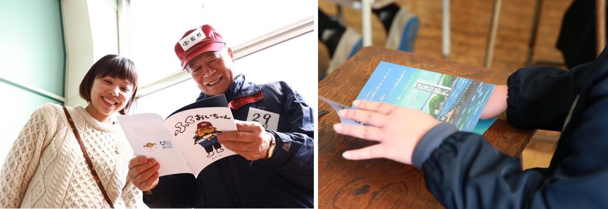 Minatodeフォーラムでは、ふくのことを教えてくれる「ふくおいちゃん」の本(表紙裏表紙を合わせて20ページ)を製作。6年1組の児童に配布しました。絵と文を制作したのは、広島県大竹市を拠点に絵画、イラスト、ぬいぐるみ、コマ撮りアニメーション、舞台美術などを幅広く制作している「はと」さん。