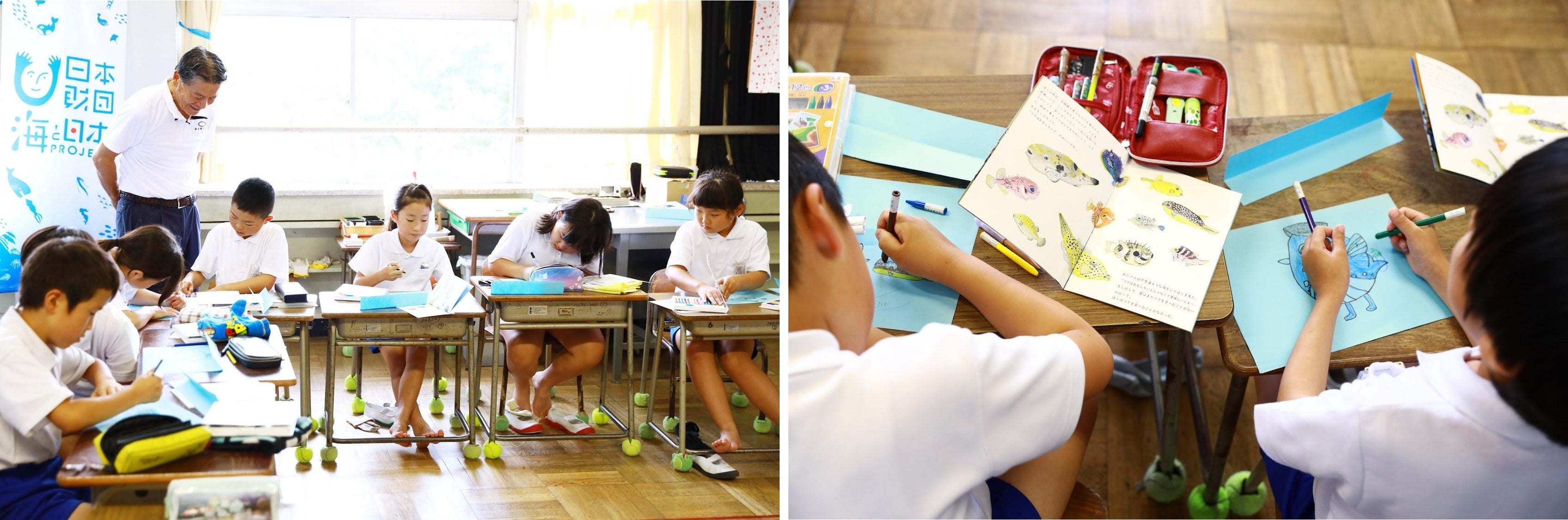 海にわりと近い位置にある桜山小学校ですが、下関市の中心部に位置するため、あまり海水浴に行ったりする機会は無いようでした。吉田小学校は海から遠く、山側にある昔から米どころであった歴史のある小学校です。2つの小学校の児童たちは、当然、下関の海の深いところを見たことや潜ったことはありません。