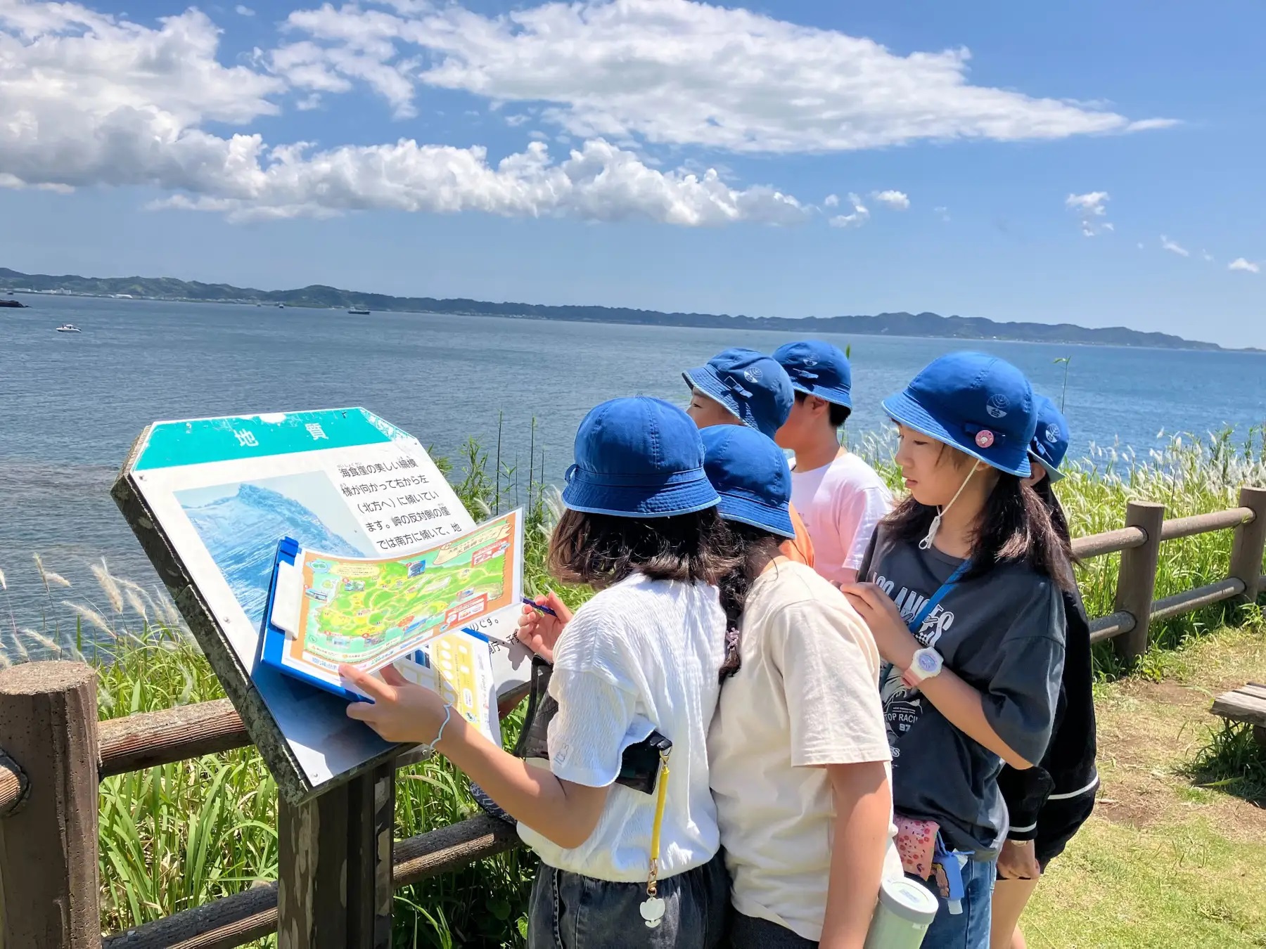 海洋学習フォトテーリングとは、マップを見ながらクイズに挑戦するアクティビティのことで、当日は青い海と緑の木々に囲まれた自然豊かな『大房岬自然公園』で、チームごとに協力し合いながらクイズを解き、潮の満ち引きや水の循環など、海をはじめとする自然環境について学びを深めました。