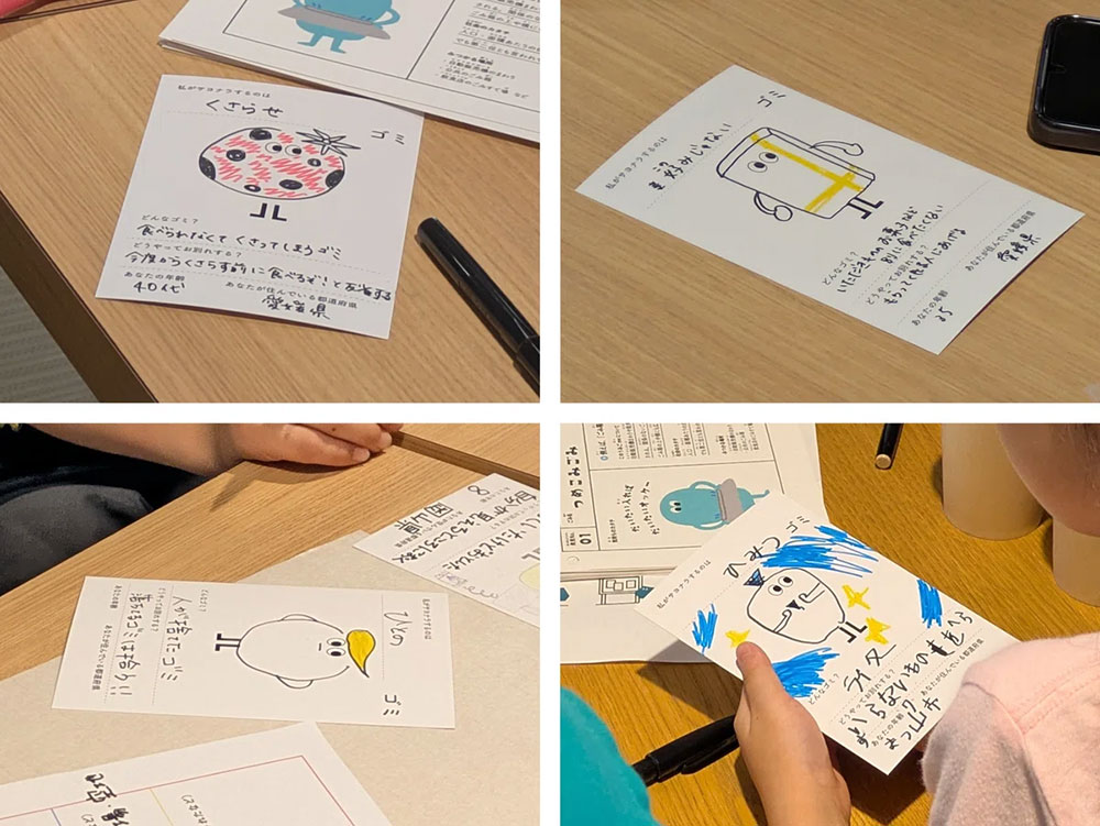 その後特に気になったごみを選び、ごみから見える人間の行動や気持ち、そして当てはまりそうな「うみごme」たちを図鑑から探して入れていきます。