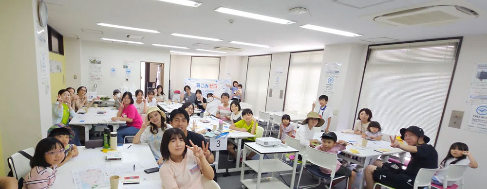 市内の高校生や中学生、小学生やその親御さん、海ごみ削減に取り組んでいる方など幅広い世代・バックグラウンドの方にご参加いただきました!お越しいただいたみなさん、暑い中ありがとうございました。