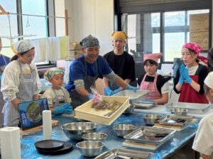 参加者の皆さんは「ぎょぎょたく糸島」の松永拓也さんから丁寧で分かりやすい指導を受けながらスミ袋を破らないように楽しみながらコウイカを捌き、キレイに盛り付けをして、魚介類を捌くことの楽しさを知ることができました。