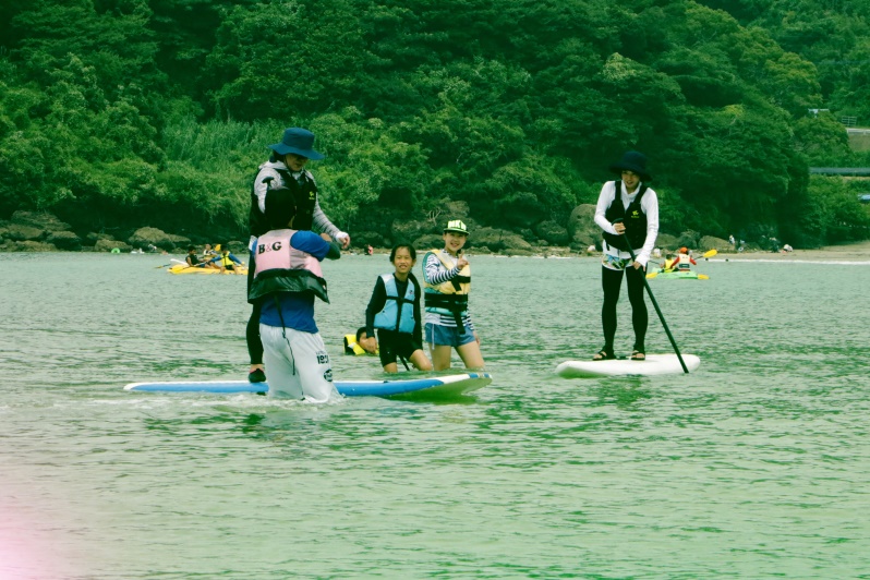 海から遠く、海よりプールに行くほうが多い内陸の子どもたちに思いっきり海を楽しんでもらうために公益財団法人ブルーシー・アンド・グリーンランド財団の協力を得て、キャンプを実施しました。参加者たちは、まずカヌーやボート、サップで海を満喫しました。
