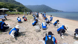 カキ養殖が盛んな広島湾には、養殖いかだに取り付ける発泡スチロール製フロートや、カキとカキの間に設置するプラスチック製パイプなどが漂着する海岸が、数多くあります。当日は県内の漁業関係者と企業・団体、市民が連携し、176名での清掃活動を実施しました。