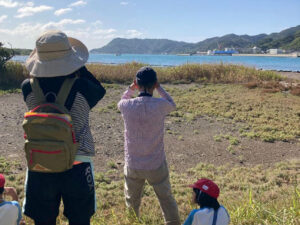 成ヶ島に着いて、一人ひとりに双眼鏡を渡して、使い方を学びました。