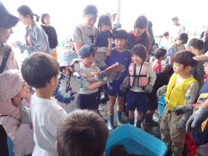 秋以降は魚釣り教室と生き物観察会として準備を進めます。毎回、会場を快く提供してくれる地元富島漁業協同組合の協力に感謝しつつ、子どもたちが実体験を経て強く逞しく育って欲しいとの願いから事業を継続していきます。滝のような汗をかきながらもハードワークなイベントを手伝ってくれるスタッフの皆さまにも感謝です。