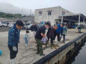 しおりには、淡路島で釣れる魚の種類と画像などが掲載されています。また、海と環境を美しく保ちましょうとの願いから、ごみの処理や注意点なども掲載してごみ拾い活動をしています。イベント後は、ごみはもちろんのこと、魚のあらも落ちてなくて、参加者に良い啓発活動が出来ていることも感じます。スタッフも活動後に必ず漁港内と市場内の清掃活動と確認を実施しており、富島漁業協同組合から感謝とありがとうの言葉をもらっています。