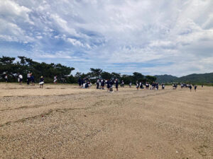 6月6日には、慶野松原の地元中学校の生徒約200人が夏の海開き行事に先立ち、慶野松原のビーチクリーン活動が行われました。生徒達によって慶野松原の砂浜は、部活の練習場でもあり、遊びや癒しの場でもある、親しみのある場所です。