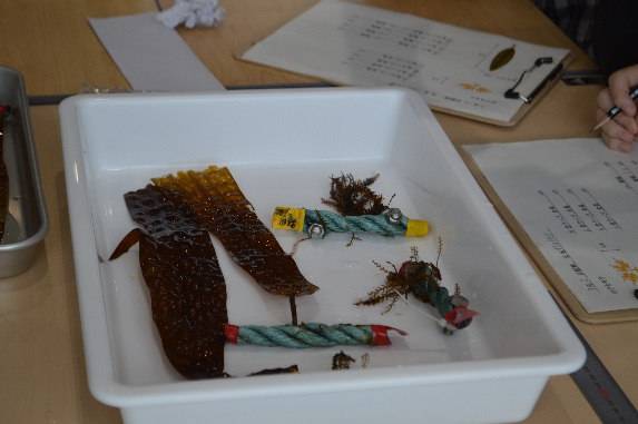・たった2ヶ月でも、かなりガゴメが成長しているのには、驚きました。実際の海中でのガゴメの生態も詳しく調べてみます。(参加高校生)