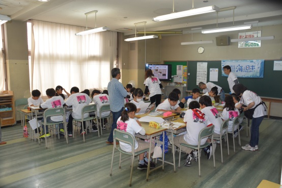 全国16エリアの小学校の海洋教育授業で、「海がもたらした観光資源」「海が育んだ食」「海の知恵・技術」についての学びを促します。そして、海と生きる国としての誇りと海を尊ぶ意識を醸成し、地域に向けて発信してもらいます。