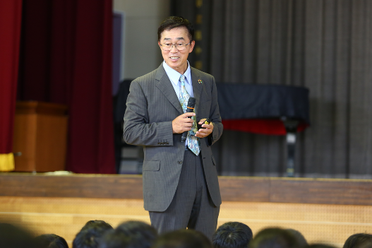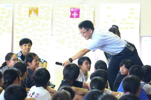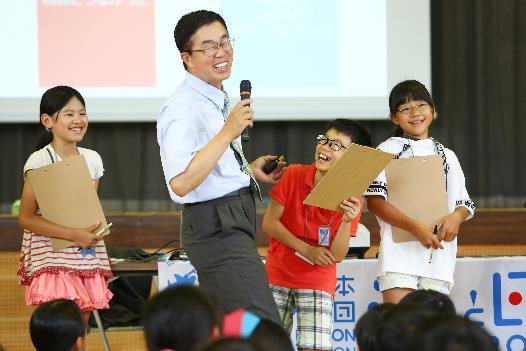 授業の後半は、元朝日新聞社科学医療部記者の科学ジャーナリスト・山本智之氏が、実際に沖縄の海や南氷洋で見てきたことや調査してきたことを、映像や写真で紹介。児童が真剣に聞き入っている様子に先生たちも驚いていました。